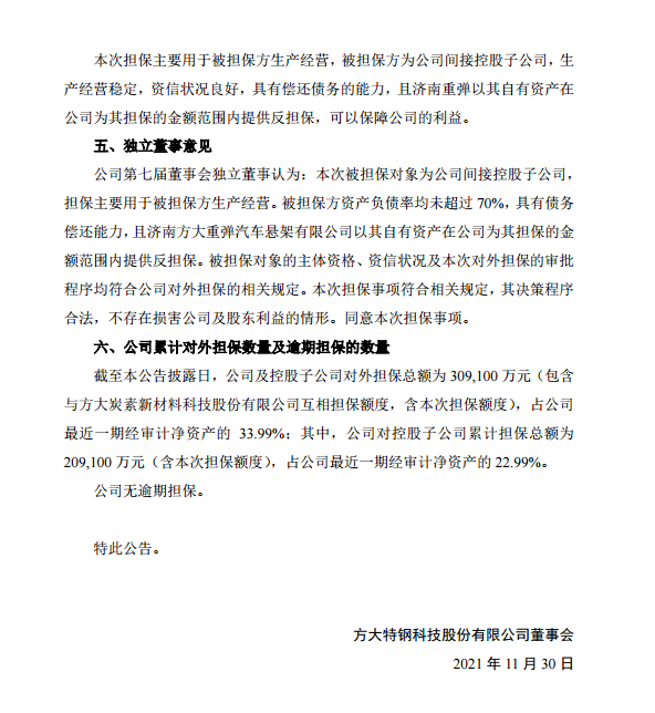 方大特鋼關于為子公司提供擔保的公告
