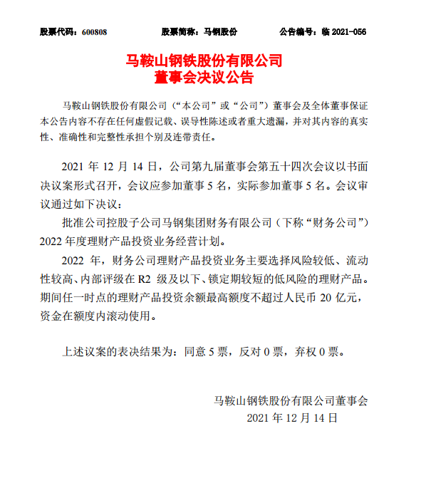 馬鞍山鋼鐵股份有限公司董事會決議公告