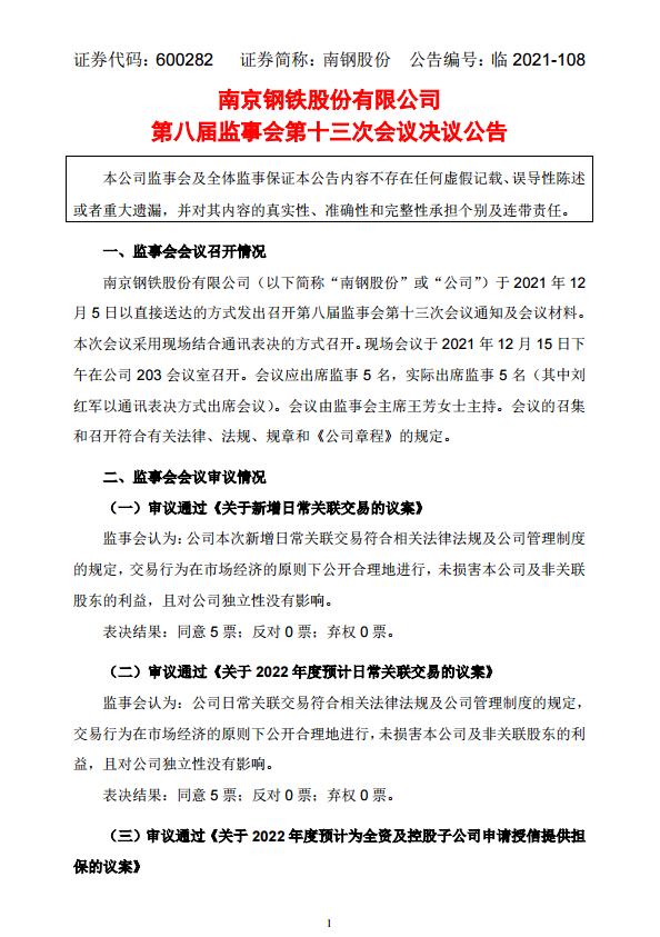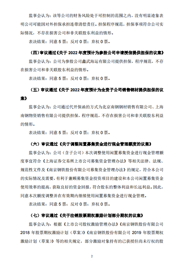 南京鋼鐵股份有限公司第八屆監事會第十三次會議決議公告