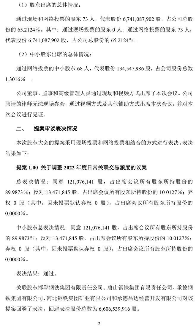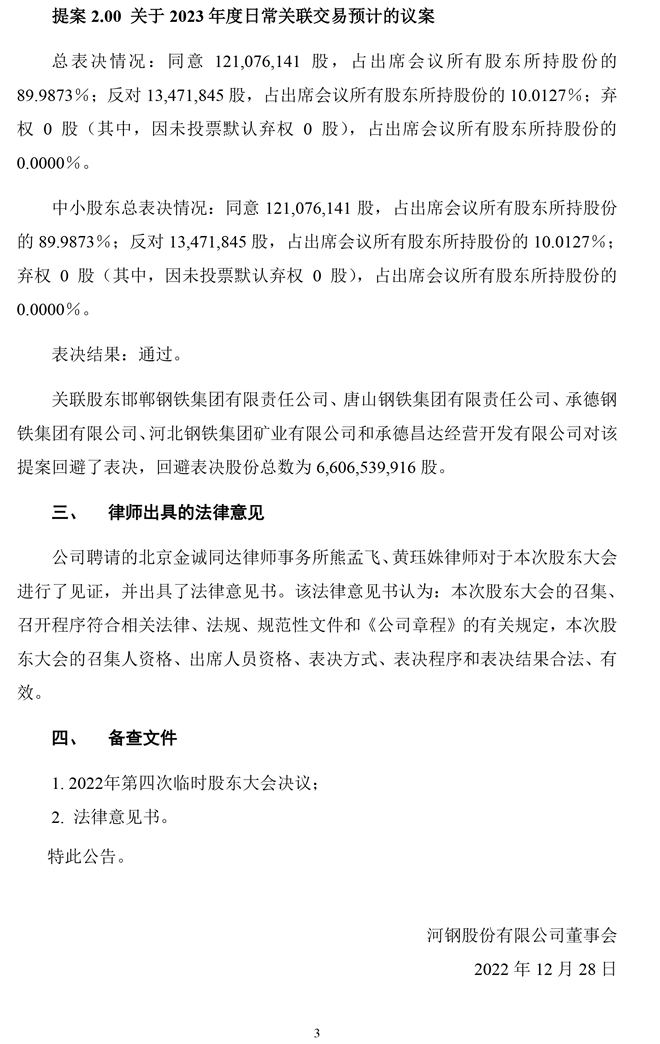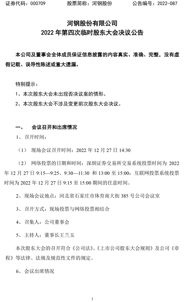 河鋼股份:2022年第四次臨時股東大會決議公告