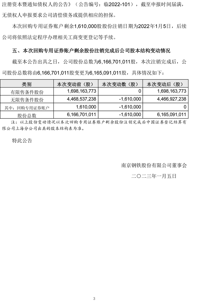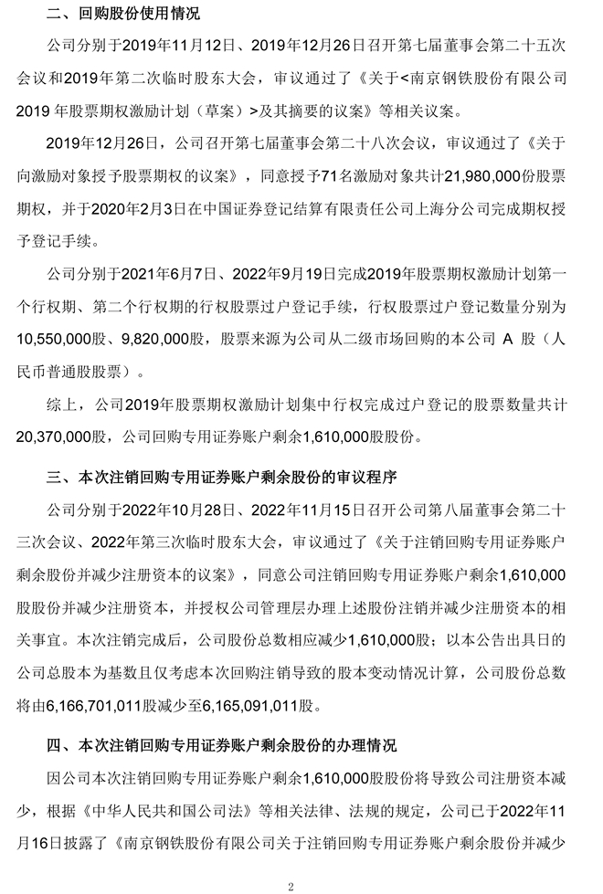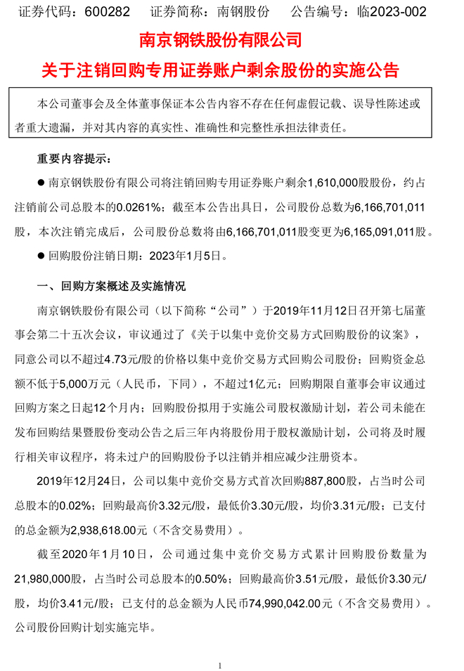 南鋼股份:南京鋼鐵股份有限公司關于注銷回購專用證券賬戶剩余股份的實施公告