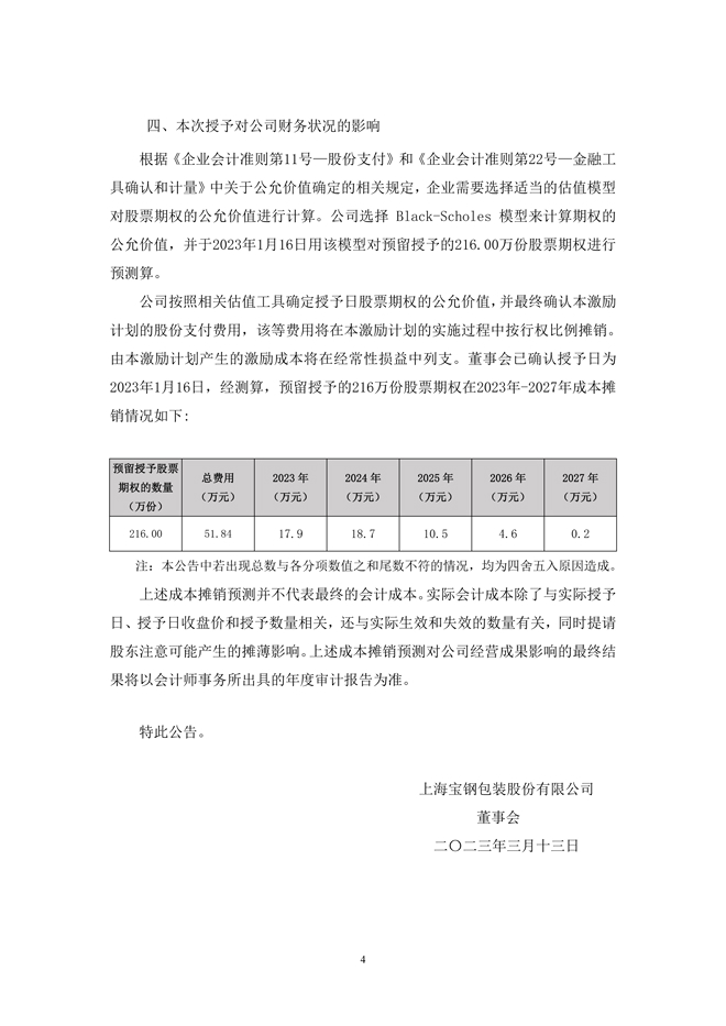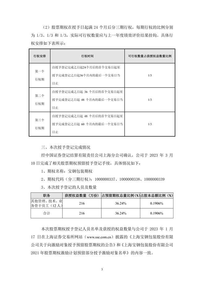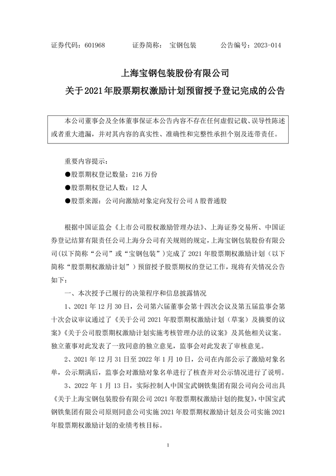 寶鋼包裝:關于2021年股票期權激勵計劃預留授予登記完成的公告