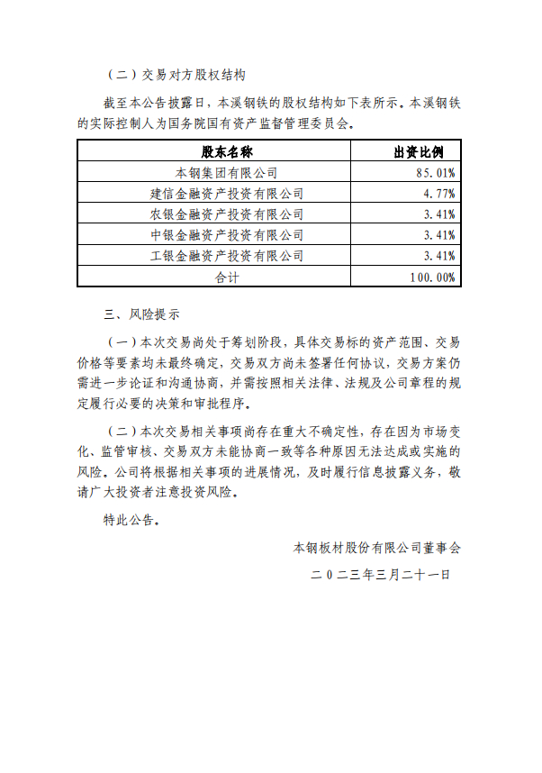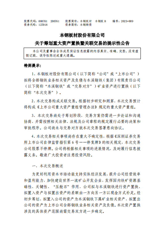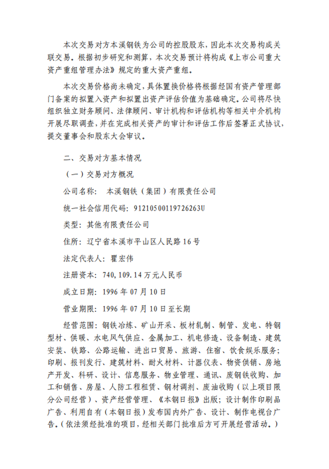 本鋼板材:本鋼板材股份有限公司關于籌劃重大資產置換暨關聯交易的提示性公告