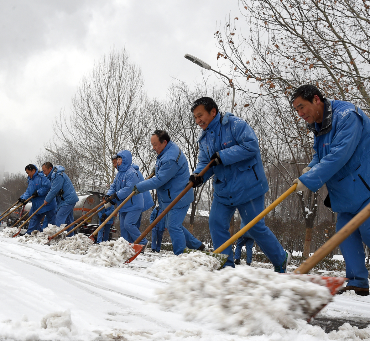 太鋼職工上班后自動自發的清理積雪。 (特約通訊員 王旭宏 攝)