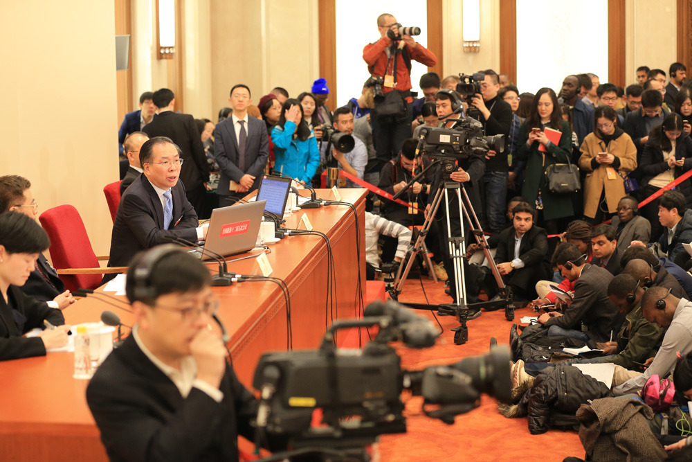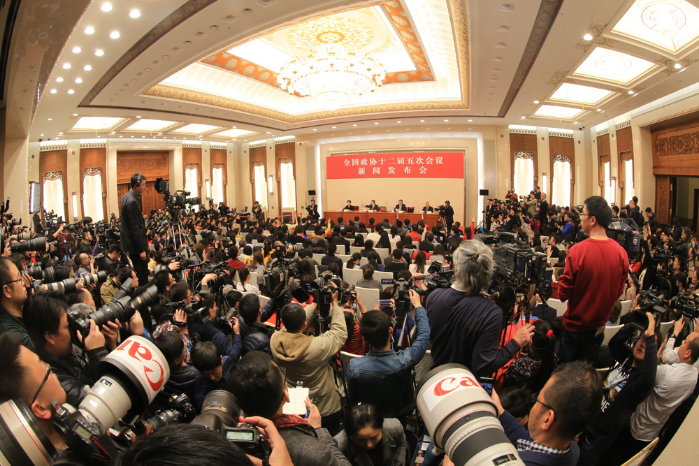 3月2日,全國政協十二屆五次會議新聞發布會在北京人民大會堂舉行,大會新聞發言人王國慶介紹會議有關情況并回答中外記者提問。