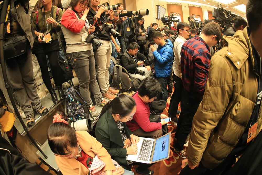 發布會結束后,記者們沖向新聞發言人繼續提問。