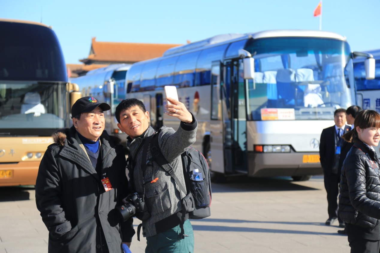 來自文藝界別的“明星”委員們平時躲著鏡頭走,今天也要拍個夠。