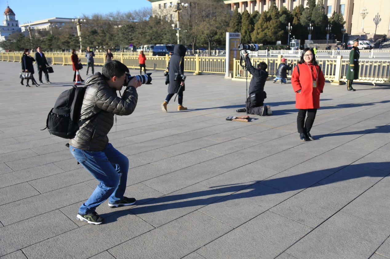 閉幕式前后,全國政協委員、工作人員、媒體記者等紛紛在天安門廣場拍照留念。