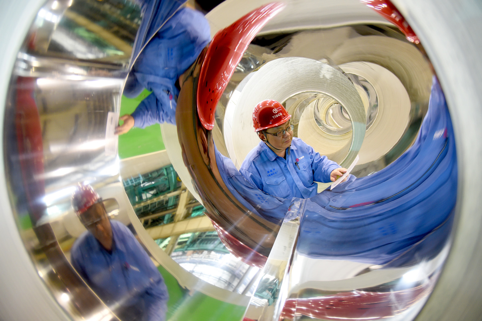 4月18日,太鋼職工在對整裝待運的不銹鋼BA板進行批號核對(如圖)。今年以來,針對建筑裝飾、家電等行業對不銹鋼BA板要求越來越高的實際,太鋼通過進一步優化生產工藝,使BA板反光度較去年同期提升了15%,滿足了高端用戶需求,產銷量實現穩中有升。(特約通訊員 王旭宏 攝)