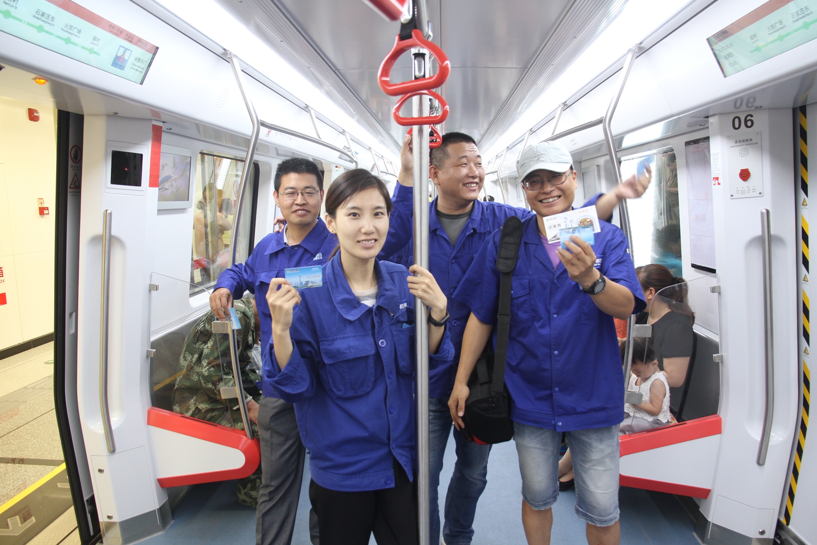 6月15日,河鋼石鋼技術中心產品開發師張立良(左一)等幾名員工專程登上石家莊地鐵一號線進行試乘(如圖)。“我們河鋼石鋼生產的多款高端鋼材已經應用于石家莊地鐵的機車抗側滾扭桿軸、軌道扣件、地鐵隔振簧等重要安全部件。”張立良告訴本報攝影通訊員,河鋼石鋼研發的高端鋼材不僅有百余項產品成功替代進口材料,還在抗低溫彈簧鋼等領域達到國內領先的技術水平。特別是在鐵路用彈簧鋼方面,軌道扣件彈簧鋼、機車彈簧鋼已經廣泛應用于列車軌道、高鐵動車、重載機車等方面,其中高鐵彈簧扣件用鋼國內市場占有率已達50%以上。(特約通訊員 張程鵬 攝)