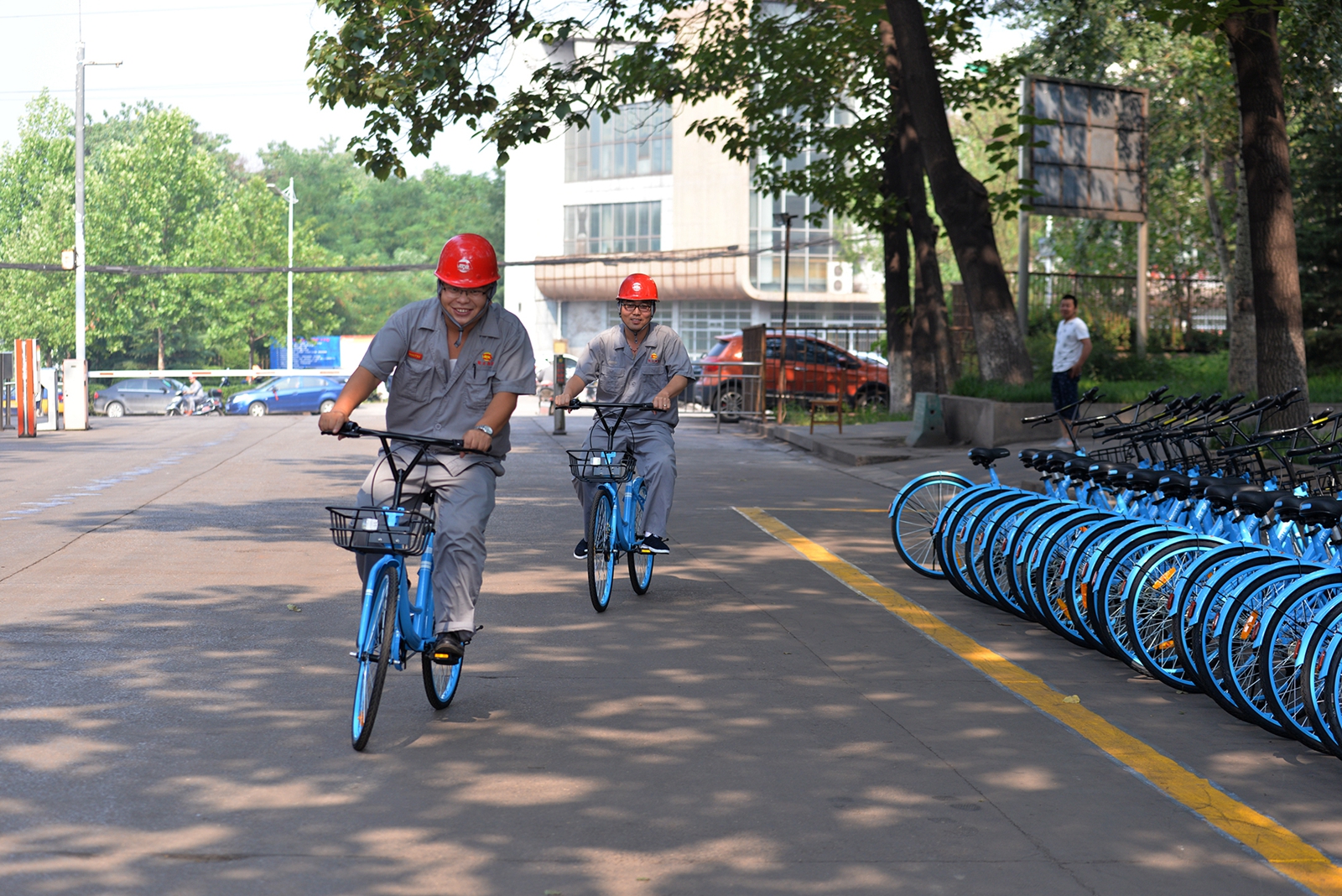 6月20日,河北敬業集團投資百萬元在廠區內為員工免費提供的1500輛共享單車正式啟用(如圖)。此舉是該企業關愛員工、將員工福利落到實處的體現,也是方便員工綠色出行、傳遞“低碳環保、綠色出行”理念的具體做法。藍色共享單車,與十里鋼城的藍天交相輝映,成為一道美麗的風景。(特約通訊員 肖建國 攝)