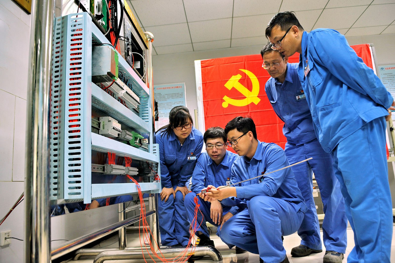七一前夕,首鋼京唐公司黨委開展黨員“領跑計劃”活動。這次活動與完成本單位生產經營和重點任務相結合,動員廣大黨員發揮先鋒模范作用,促進了各項生產經營任務的全面完成。圖為該公司熱軋部“陳鐸創新工作室”黨員正在進行設備優化程序模擬實驗。(特約通訊員 楊立文 攝)
