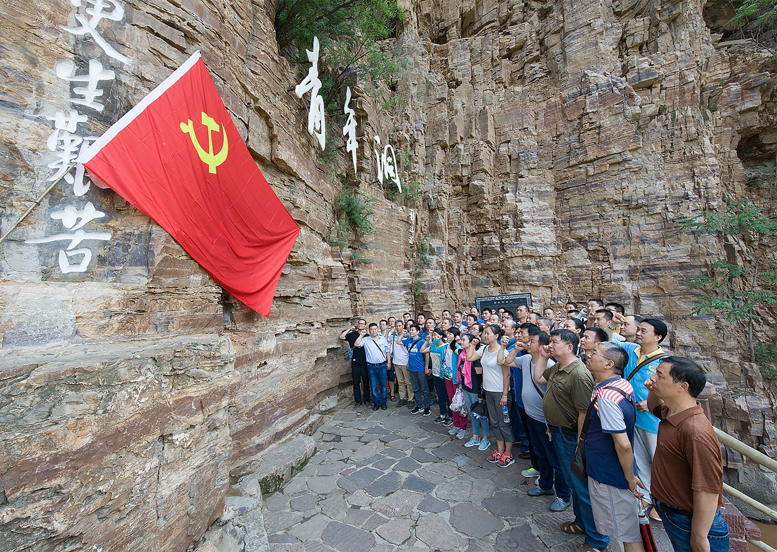 連日來,安鋼集團公司黨委組織開展了講好“兩學一做”學習教育專題黨課、“黨員主題活動日”等豐富多彩的活動。圖為安鋼基層黨支部書記到林州紅旗渠重走修渠路、重溫入黨誓詞主題日教育活動現場。(特約通訊員 殷海民 攝)