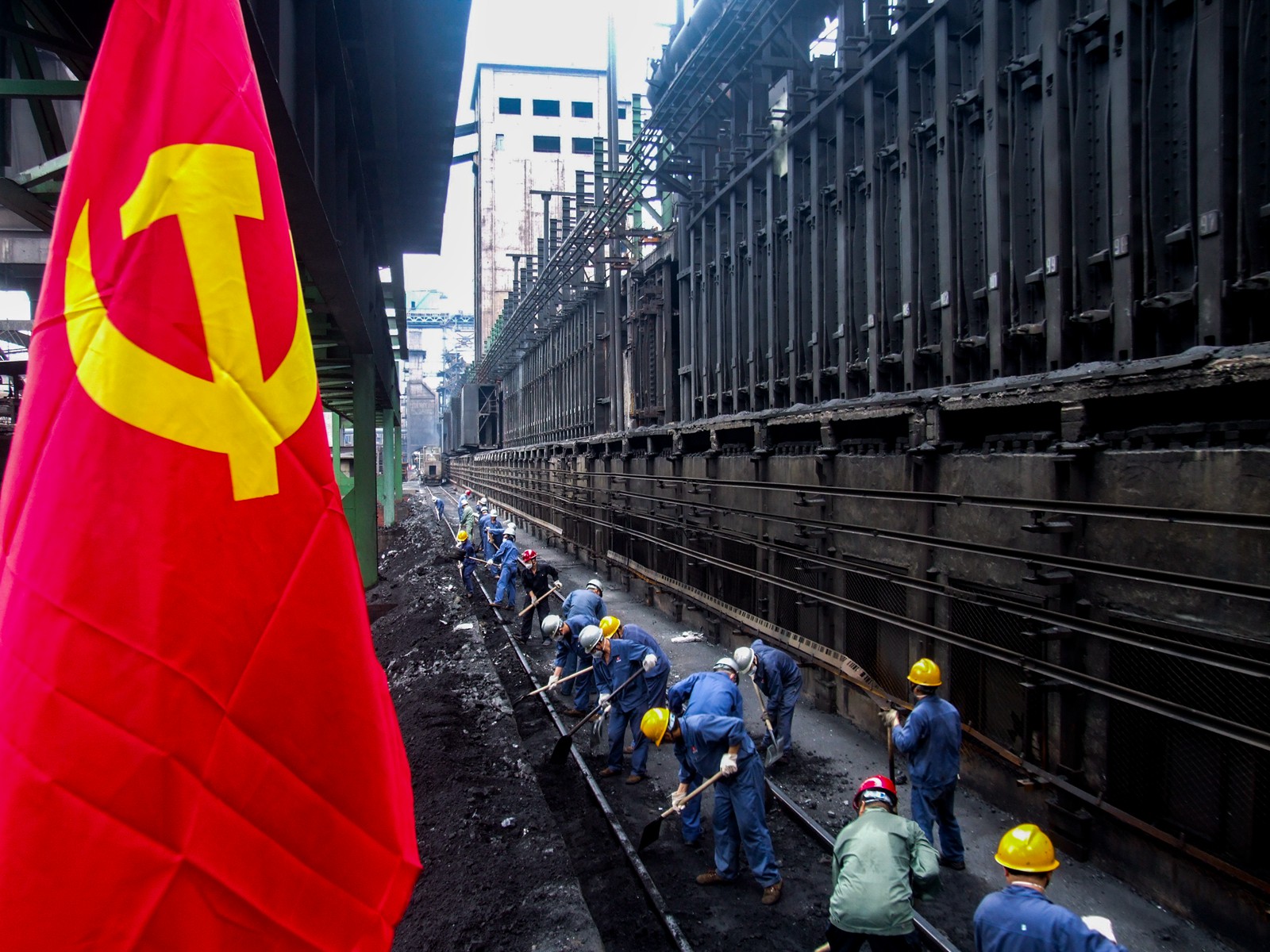 七一前夕,江西新鋼各級黨組織結合創建清潔環保花園式工廠建設要求,組織3500名黨員利用業余時間開展以廠區衛生整治為主要內容的義務奉獻勞動。圖為黨員正在清理出焦軌道時的情景。(特約通訊員 藍義高 攝)