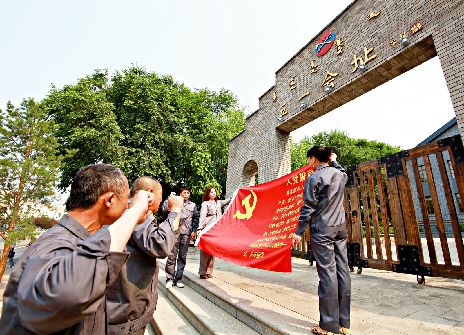 在黨的96歲生日到來前夕,6月26日,烏蘭浩特鋼鐵有限責任公司黨委組織新老黨員代表,來到興安盟烏蘭浩特市“五一會址”,重溫入黨誓詞,重溫紅色記憶。(特約通訊員 鄭志宏 攝)