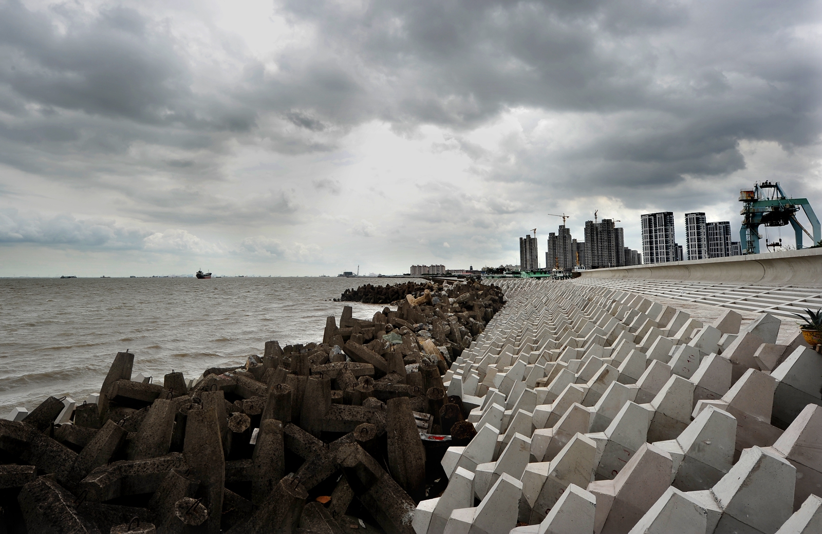 中國寶武集團寶鋼新型建材科技有限公司將寶鋼滾筒鋼渣顆粒作為原料制作水利翼型塊混凝土。與傳統水泥產品相比,該產品具有更高的強度和抗沖沙性。日前,該產品正式應用于寶鋼長江大堤加固改造工程,預計工程將在2019年全部完成。圖為正在改造中的寶鋼長江大堤。(記者蔣文雯 通訊員 施琮 攝)