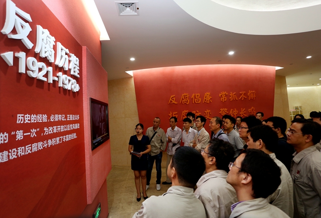 9月27日,馬鋼特鋼公司黨員干部正在安徽省黨風廉政教育基地接受警示教育(如圖)。國慶、中秋長假來臨,該公司黨委給涉及重點工程建設以及關鍵崗位的黨員干部上了一堂生動的黨風廉政教育課,不斷增強自我約束能力,營造濃厚的“過廉節”氛圍。(特約通訊員 羅繼勝 通訊員 胡曉軒 攝)