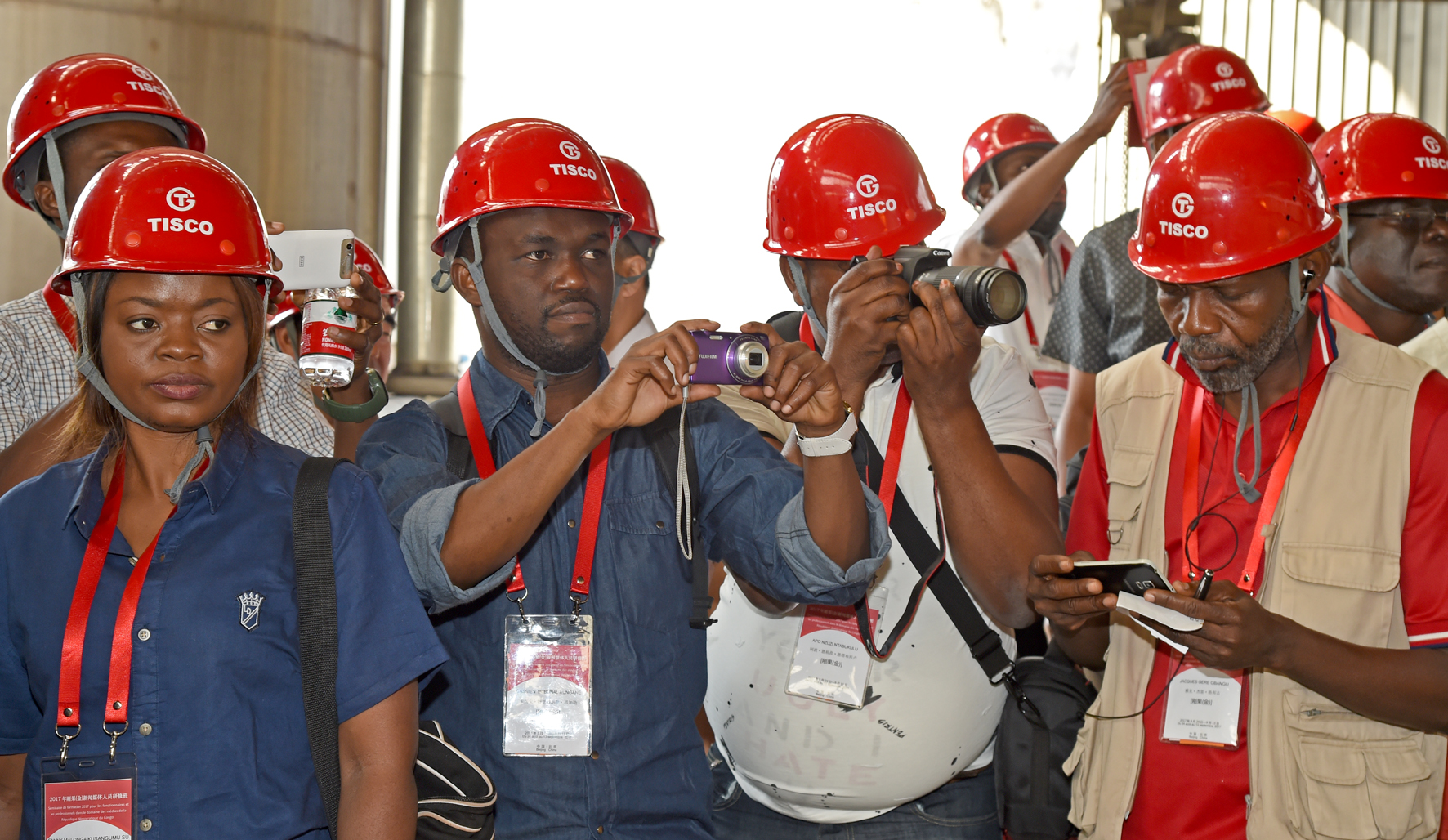 日前,以“向世界講好山西故事”為主題的剛果(金)新聞媒體研修班學員前往太鋼參觀訪問。學員們先后參觀了太鋼煉鐵廠、不銹冷軋廠和太鋼博物園,被太鋼的歷史文化、生產發展和工業景觀深深吸引。來自剛果(金)的資深媒體人費斯頓.卡曼達.克拉先生說:“太鋼的發展使我們了解了中國工業為什么強大,太鋼了不起,中國了不起!”。圖為研修班學員在太鋼煉鐵廠生產現場采風拍攝。(特約通訊員 王旭宏 攝)