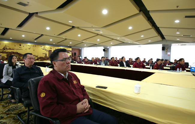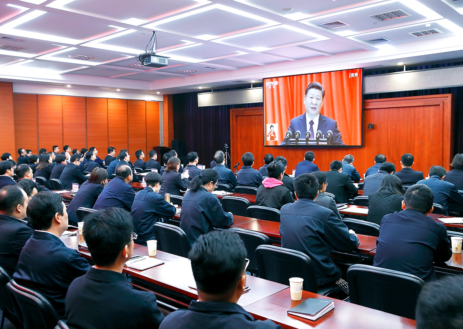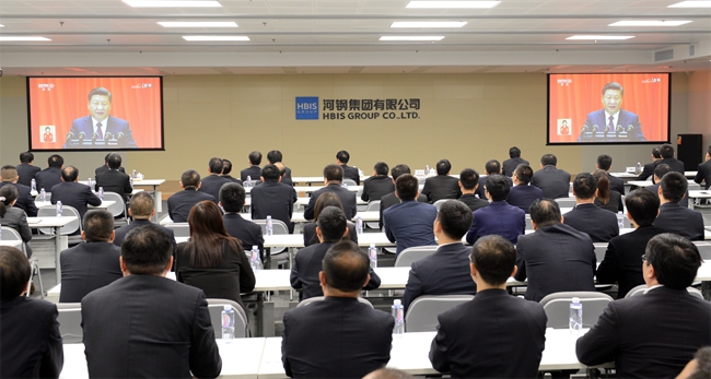 10月18日,河鋼集團組織集團總部及駐總部各子分公司黨員干部在集團總部收看黨的第十九次全國代表大會開幕盛況,大家表示將深刻領會習近平總書記的重要講話精神,并落實到具體工作中,以實際行動推動各項工作再上新臺階,為建設最具競爭力鋼鐵企業貢獻新的力量。(魏清源 攝)