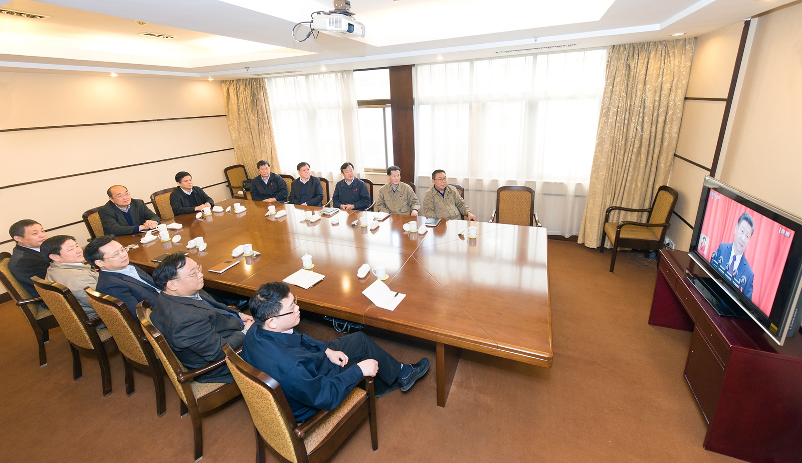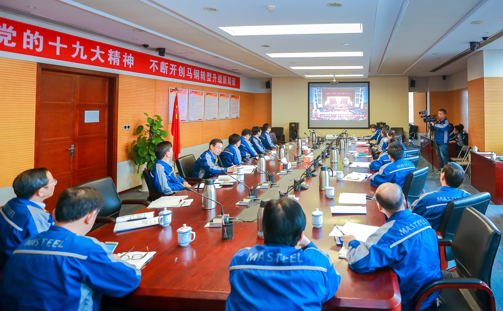 安鋼集團公司領導班子在認真收看十九大盛況。(特約通訊員 殷海民 攝)