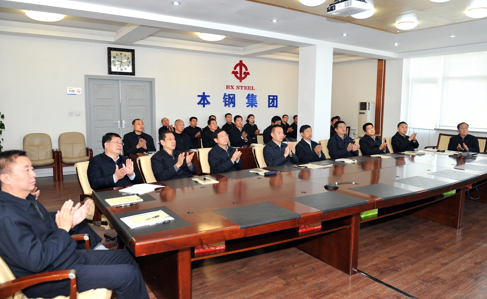 10月18日,黨的十九大勝利召開。本鋼集團黨委把收聽收看黨的十九大盛況,作為一項重要的政治任務,高度重視、精心安排、認真落實,當天廣大黨員領導干部通過廣播、電視、互聯網等渠道收聽收看大會盛況。圖為本鋼集團領導班子組織收聽收看黨的十九大開幕會盛況。 (田崢 攝)