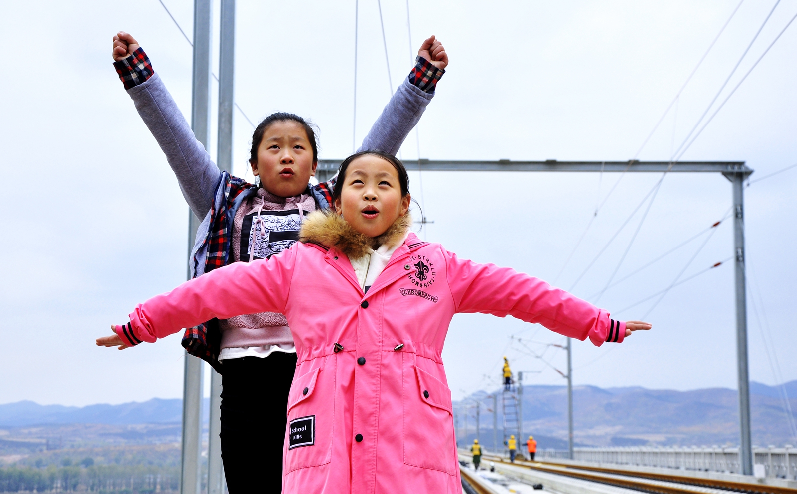 10月22日,凌鋼退休職工高女士把小學“品德與社會”課堂搬到現實生活,帶領正在讀書的侄女佳宜(后)、孫女丹丹(前)到京沈高鐵遼寧凌源段建設工地進行“愛祖國、愛家鄉”教育,兩個孩子第一次親眼見到、第一次親身體會家鄉山川大地鋼鐵鑄就的將要騰飛的高速交通大動脈,興奮地喊出:“厲害了,我的國!”(柳祖林 攝)