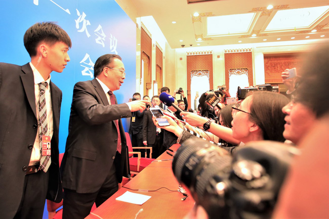 發布會結束后,記者們第一時間沖向新聞發言人進行追問。