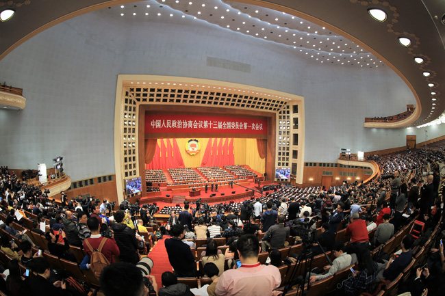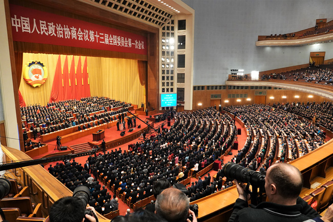 圖為全國政協十三屆一次會議會場。
