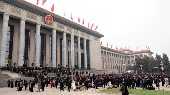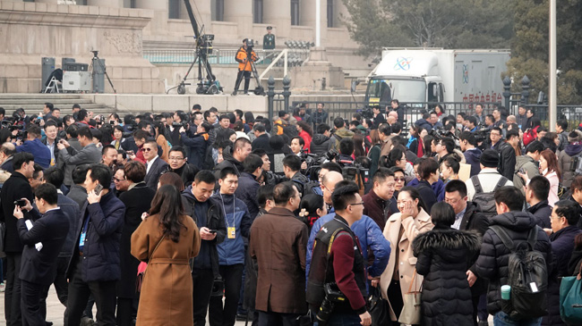 委員、記者、工作人員等交織在一起,人民大會堂前已經“人山人海”。