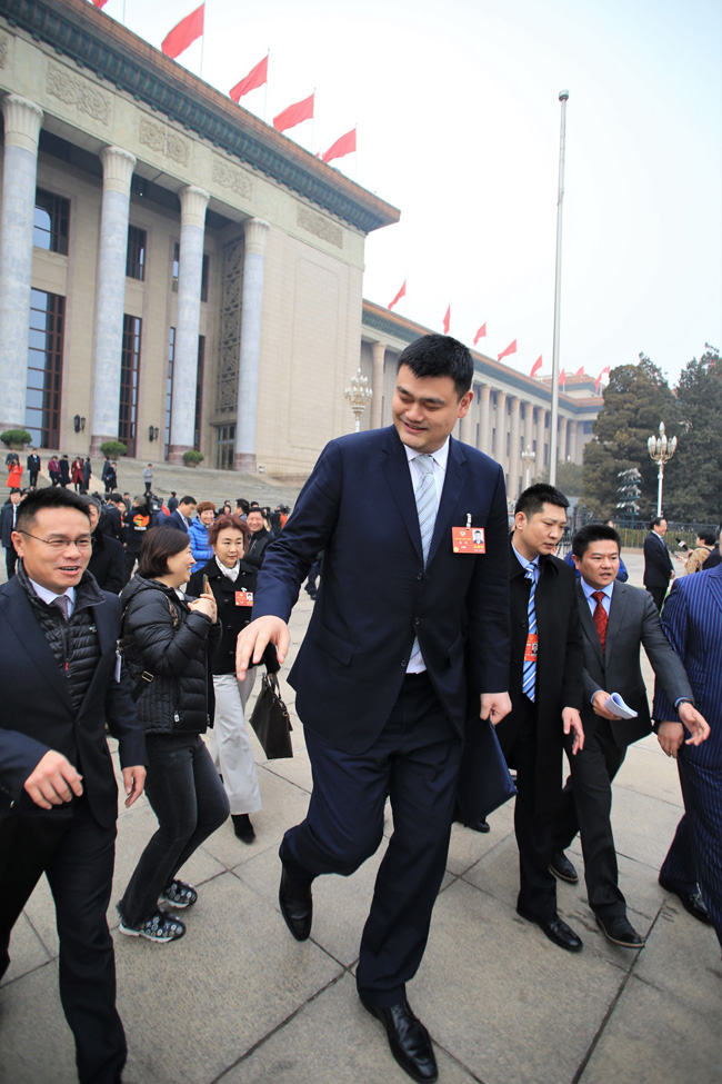 又到新一年的兩會時間,新老朋友見面格外親切,圖為姚明委員正在向其他委員打招呼。