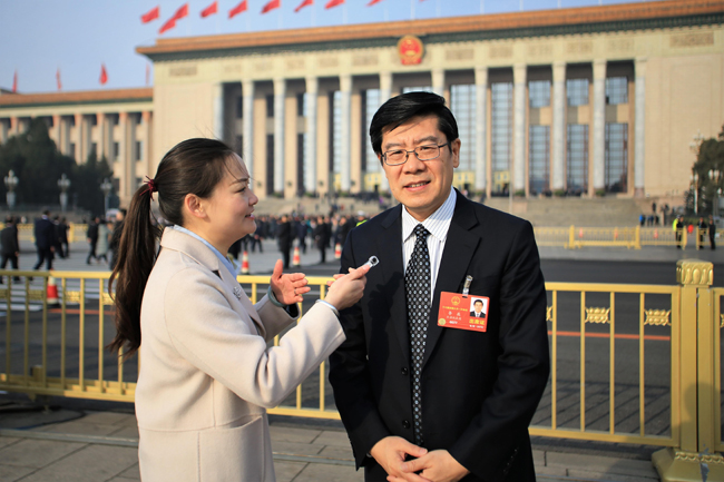 李巍人民大會堂前接受中國冶金報社記者采訪