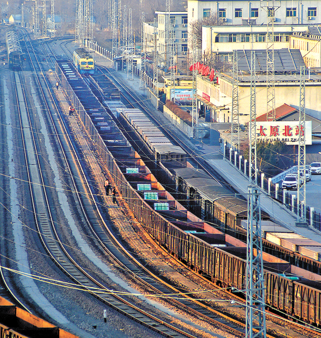 3月1日,一輛載著太鋼產品的列車在太原北站整裝待發(如圖)。太鋼實施精準復工以來,嚴控疫情,穩抓生產,實現疫情防控與生產經營兩不誤,今年2月份日均發運量較去年同期提升14.55%。(特約通訊員 王旭宏 通訊員 高福生 攝)