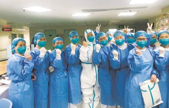 新冠肺炎疫情發生以來,華潤武鋼總醫院抗疫一線980多名女職工戰斗在抗疫一線。在2月14日被指定為新冠肺炎定點收治醫院之前,該院還先后派出5批醫療隊、100多名女醫護人員奔赴武漢市抗疫一線定點醫院、方艙醫院、隔離點,為更多患者提供專業醫療服務。圖為華潤武鋼總醫院內科部分醫生、護士在該院住院部呼吸與危重癥病區合影。 (王媛媛 攝)