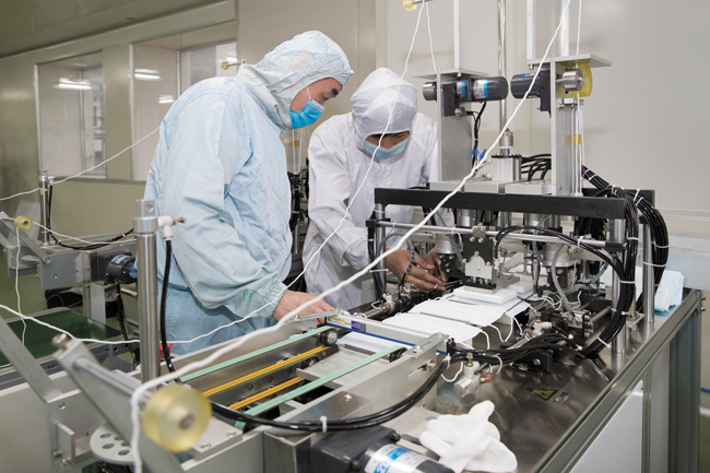 3月10日,福建三鋼集團工作人員正在對援建福建省三明市的口罩生產線進行設備調試(如圖)。針對三明市新冠肺炎疫情防疫物資緊缺的情況,三鋼主動出資600余萬元采購口罩生產設備和原料,援建5條口罩生產線。目前,4條生產線已投入生產。待5條生產線全部投產后,口罩日產量預計可達50萬個。 (鄭玉林 李文波 攝)