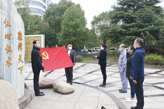 3月12日,江西省新余市新鋼中心醫院火線入黨宣誓儀式在該醫院門診大廳舉行。該醫院抗疫一線人員謝榮盛光榮入黨,另有6名同志遞交了入黨申請書。 (歐陽斯娟 攝)