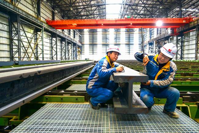 4月1日,馬鋼重型H型鋼生產線職工正在檢驗新開發的美標重型H型鋼產品(如圖)。自復工復產以來,馬鋼全力推進國內首條重型H型鋼生產線建設,在加快收尾項目完工建設的同時,充分利用調試成功具備熱負荷試車的生產線加快新產品開發,為該生產線4月底順利投產兌現訂單創造條件。自3月29日以來,該生產線已試制開發了美標3個規格重型H型鋼產品。(張磊 攝)