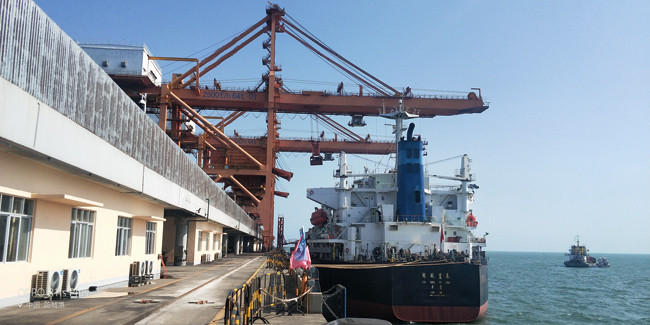 5月4日23時,裝載著柳鋼集團防鋼基地第一船鐵礦石的“錦航富展”輪從廣西防城港公用碼頭轉水靠岸防城港鋼鐵基地102碼頭(如圖)。據悉,該輪共裝載鐵礦石49420噸,涉及澳紐曼粉、巴西BRBF粉兩個品種,并于5月7日完成卸船。 (姚司賢/文 陸青/攝)