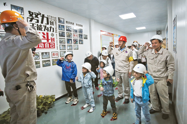 10月24日,中國寶武韶鋼12名優秀班組長和他們的家屬正在該公司高一線現場參加“七彩韶鋼體驗日——優秀班組長專場”活動,圖為孩子們正在體驗爸爸的交接班儀式(如圖)。據悉,韶鋼此次邀請了來自一線的12名優秀班組長和他們的家屬,參觀了8號高爐、高一示范線、韶鋼智慧中心等,感受韶鋼的新氣息、新變化。 (特約通訊員 陳立新/文 通訊員 謝承軍/攝)