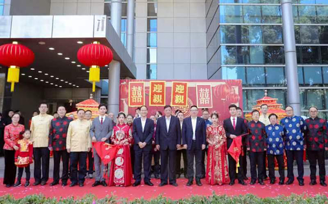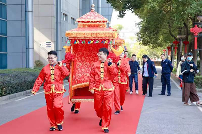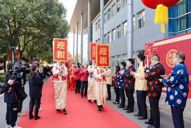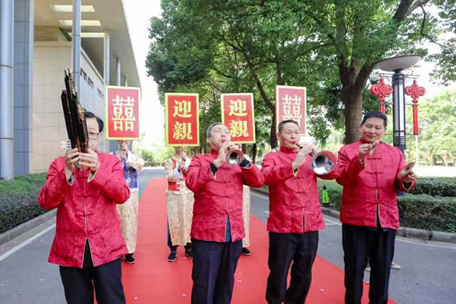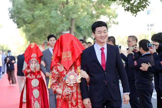 近年來,大峘集團通過為員工舉辦集體婚禮倡導“家”文化,把小“家”凝聚成大“家”,把個人凝集成團隊,不斷豐富“快樂工作,幸福生活”大峘人的目標。據悉,大峘集團已為員工連續舉辦18屆集體婚禮,逾100對新人喜結良緣。集體婚禮有西式婚禮、海上婚禮、漢式婚禮等形式。該集團旨在推進婚俗改革、倡導婚事新辦、弘揚文明新風。圖為2022年11月5日大峘集團為員工舉辦的第18屆集體婚禮現場。(盧顯忠 徐祇辰 攝)