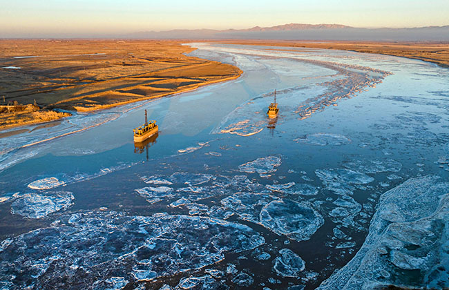 受寒潮天氣影響,黃河內蒙古昭君墳段自11月28日開始出現流凌,截至12月1日9時,河道流凌覆蓋率已達到70%,右岸岸冰已覆蓋大半河道,岸冰已延伸至包鋼2號、3號取水口。目前,包鋼動供總廠水文站24小時密切監控黃河流凌、水位的變化情況,確保流凌期間取水設施的安全,保證廠區安全穩定供水。(記者 白立新/文 通訊員 李景偉/攝)