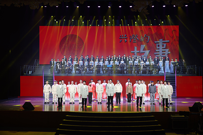 12月28日,一臺由中信泰富特鋼集團旗下企業興澄特鋼藝術團等單位聯合制作的原創五幕大型情景音樂舞臺劇《興澄的故事》在江陰大劇院上演。該劇講述了半個多世紀以來,一代代興澄人自力更生、艱苦奮斗建鋼廠,興澄特鋼從無到有、從小到大不斷發展壯大的故事。圖為全體演職員謝幕場景。(特約通訊員 陸衛宇 攝)