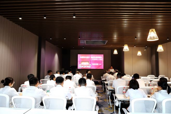 參觀結束后,全體人員前往會場,聆聽黨的二十大精神主題黨課。浙江紅船干部學院、中共嘉興市委黨校教師李圓月圍繞“向著偉大復興 知重負重再出發”這一主題,以“定位”“定標”“定法”為維度,從立足新時代歷史性成就、探尋中國式現代化實現路徑、全面推進中華民族偉大復興等方面分析了黨的二十大報告整體行文邏輯。重點從“一組給這次大會作思想準備的重要講話”“一份作為馬克思主義綱領性文件的報告”“一個體現理論實踐制度創新成果的黨章”等十個“一”入手,就如何深入貫徹落實黨的二十大精神作出具體闡述。內容豐富、理論深刻、語言生動、案例詳實,整個授課過程絲絲入扣、潛入心田,讓全體人員受益匪淺。這場“理論盛宴”使全體人員對黨的二十大報告全文脈絡有了更深入的理解,大家紛紛表示,要把學習成果轉化為做好當前各項工作的強大動力,努力在以學鑄魂、以學增智、以學正風、以學促干方面取得實實在在的成效。